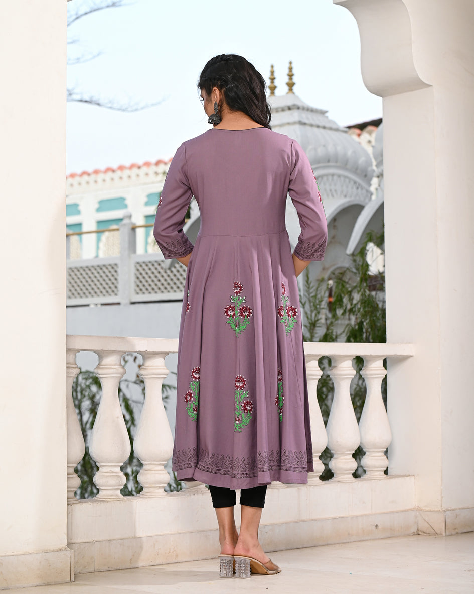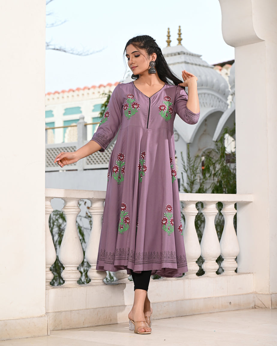 Grey Block Printed Kurta