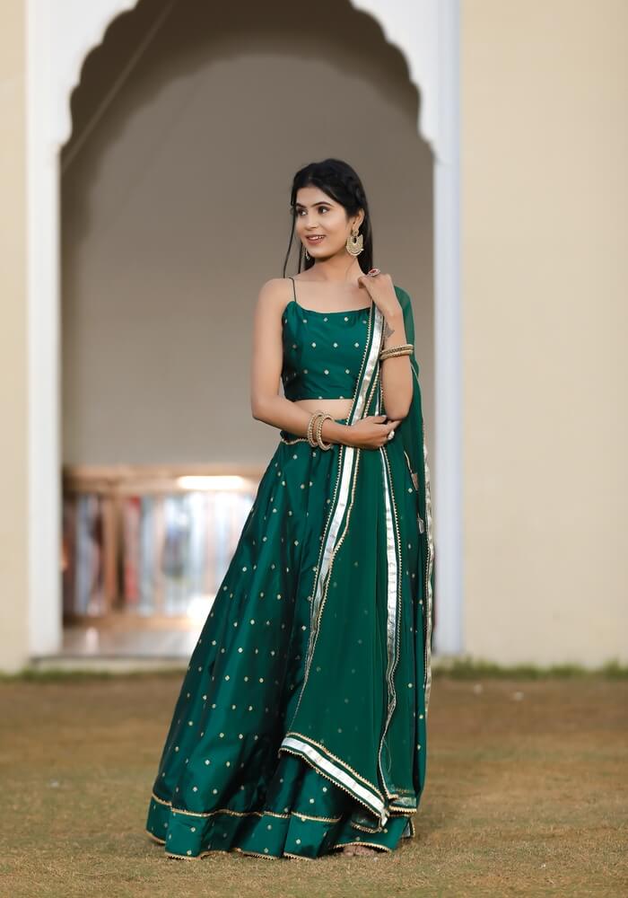 Include : 1 Stitched Lehenga, 1 Dupatta and 1 Unstitched Blouse Fabric||