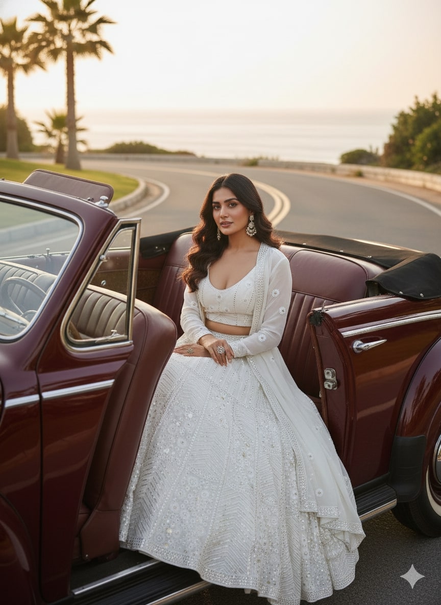 Featuring a clean silhouette with delicate tonal embroidery and a soft flared skirt, this lehenga is perfect for those who prefer understated sophistication with modern charm.